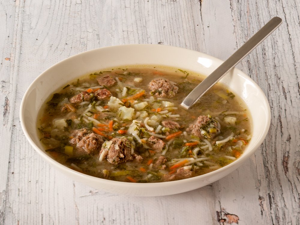 Hollandse groentesoep met runderpoulet en gehaktballetjes