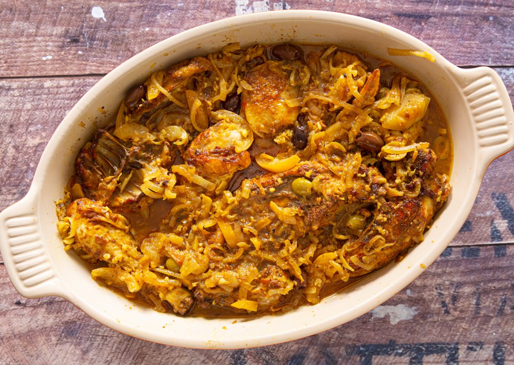 Deze Marokkaanse kip heeft door de Noord-Afrikaanse specerijen, olijven en ingelegde citroen een heerlijke geur en smaak. Aanrader!!