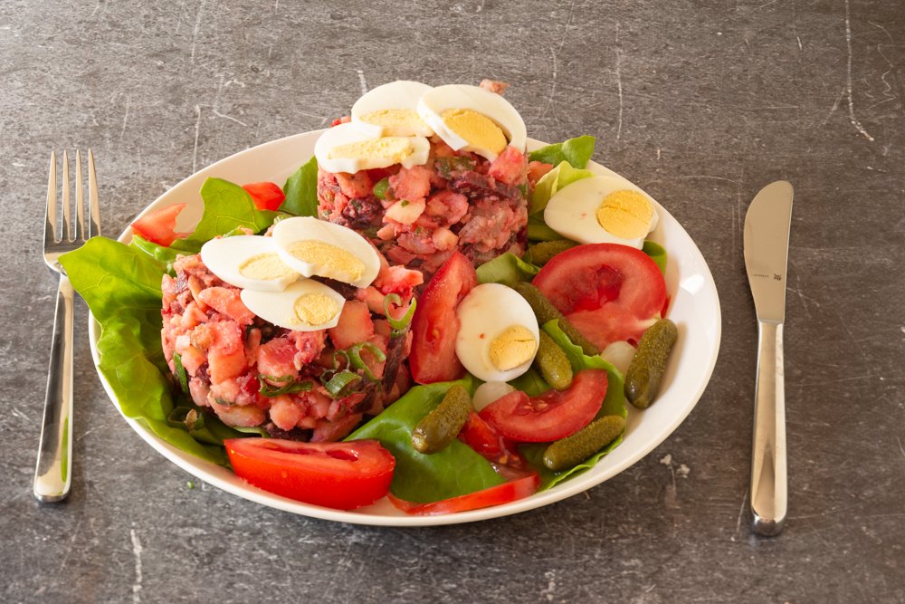 Oudhollandse haringsalade met rode bietjes