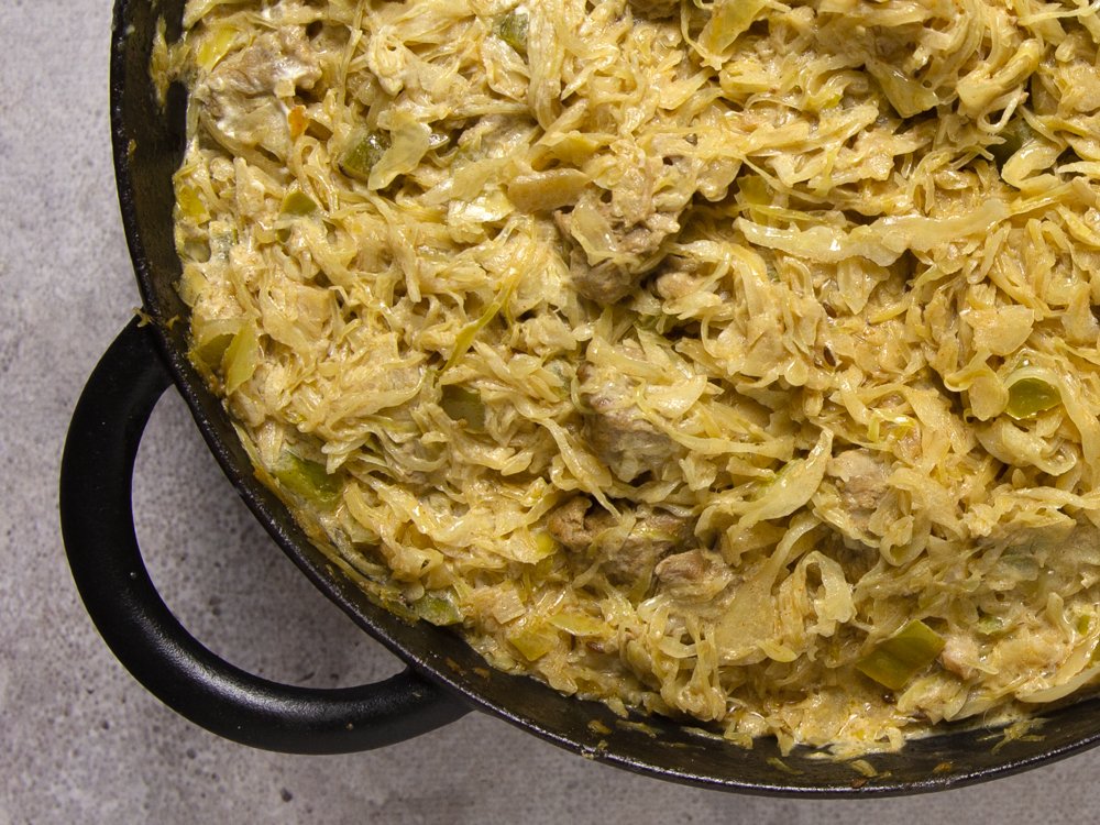 Székely Gulyás – Hongaarse varkensgoulash met zuurkool – maak je met procureur, zuurkool, groene paprika en zure room.
