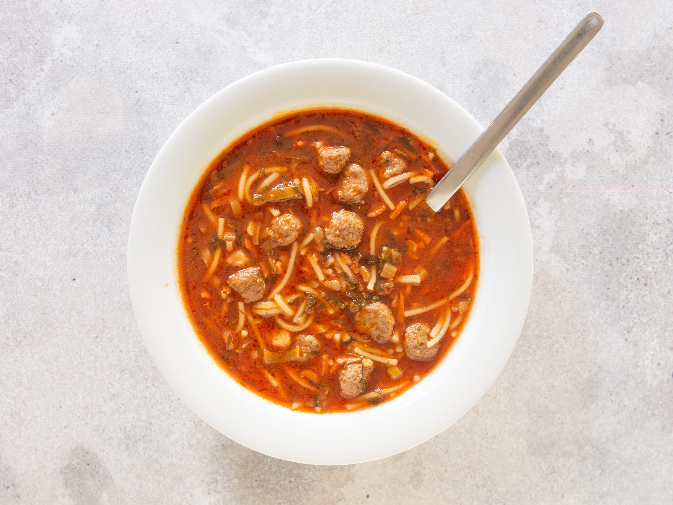 In dit verhaaltje een recept voor tomaten-groentesoep met gehaktballetjes.