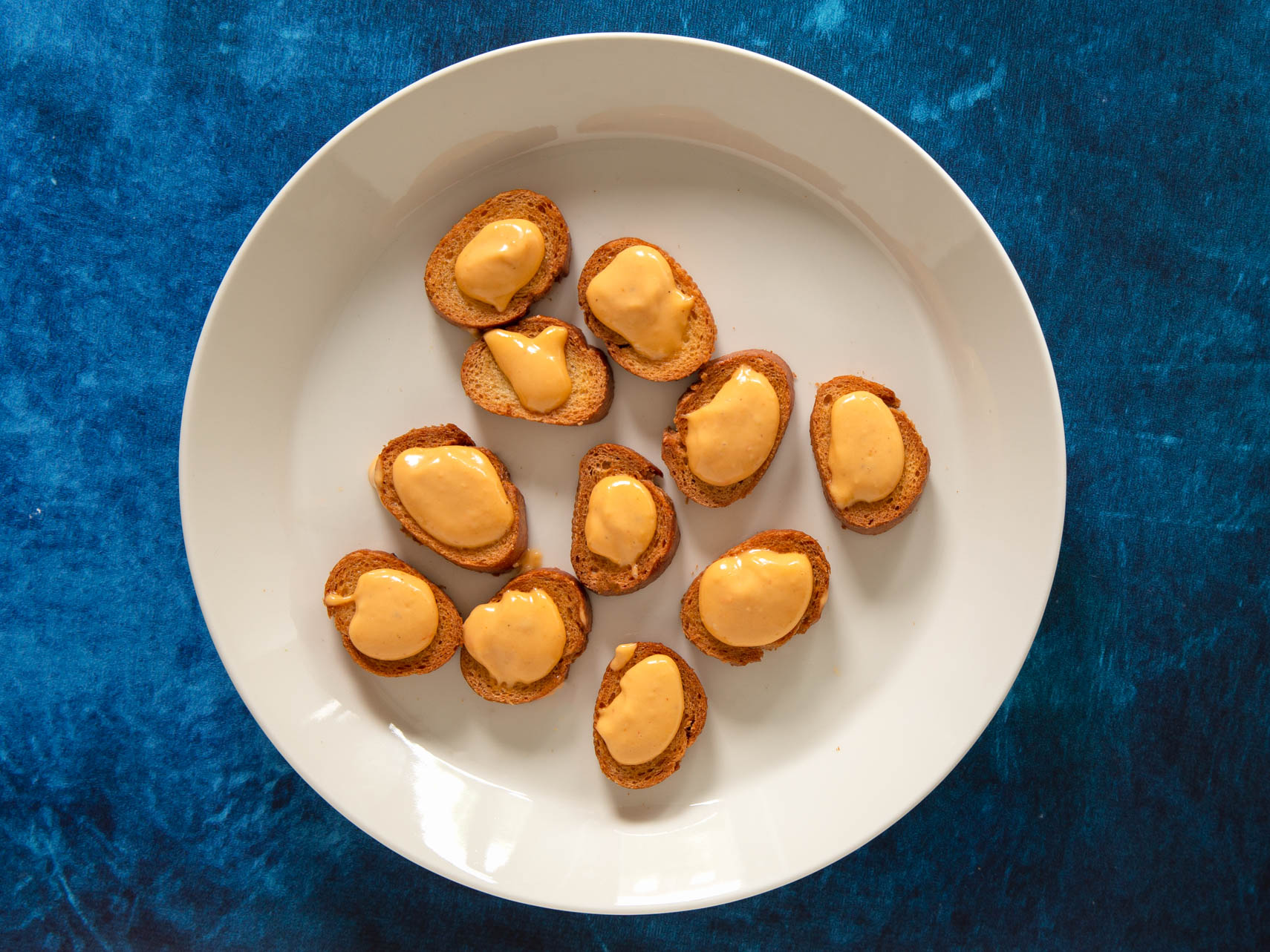 - Je begint met het brood met een paar eetlepels water of visbouillon te bevochtigen om het brood zacht te maken. Dan knijp je het overtollige vocht uit het brood en doet het in een keukenmachine en dan voeg je ook de harissa, knoflook, eierdooier, citroensap en zout toe.